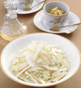 1 はくさい、セロリは5cm長さの細切りにして、水に放し、水気をきります。