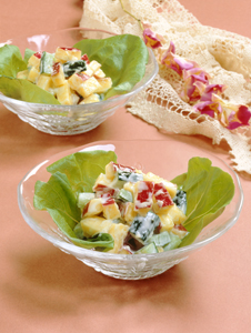 3 さつまいもときゅうりを合わせ、マヨネーズであえます。