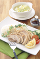 ゆで豚のにらじょうゆ 濃厚なにらじょうゆは、くせになる味。野菜たっぷりでとってもヘルシー