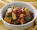 ミックスビーンズのマリネ 豆は炭水化物が多いため、交換表では穀物と同じ仲間。食物繊維も多いので、適量をこまめに食べましょう
